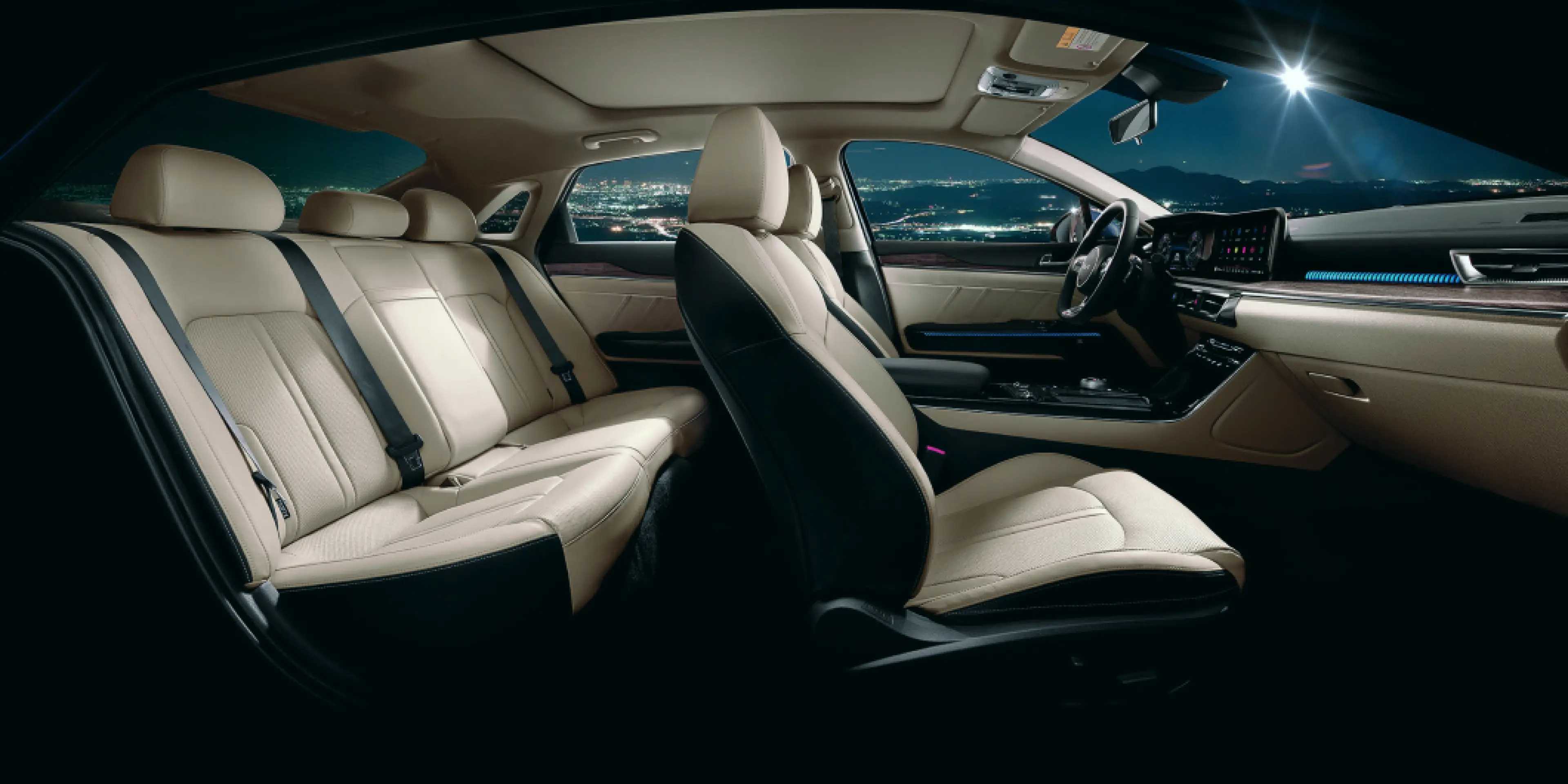 Благодаря большой колесной базе салон Kia K5 просторен и комфортен. Продуманная эргономика, внимание к деталям и высокотехнологичное оснащение формируют функциональное пространство, вдохновляющее на новые идеи.