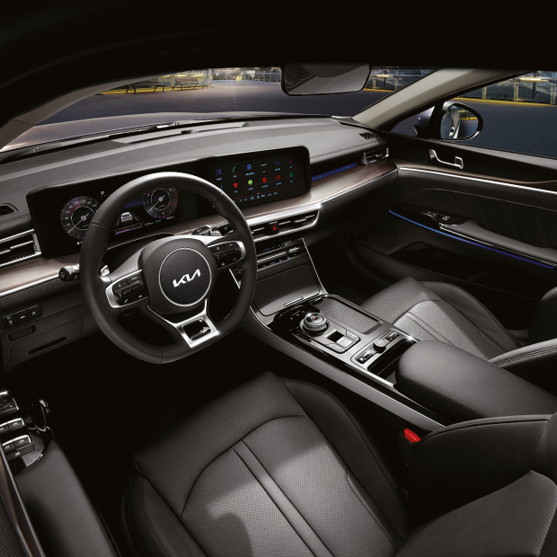 Салон обновленного Kia K5 ориентирован на водителя. Технологичные опции комфорта позволяют насладиться как деловой поездкой, так и долгим путешествием.